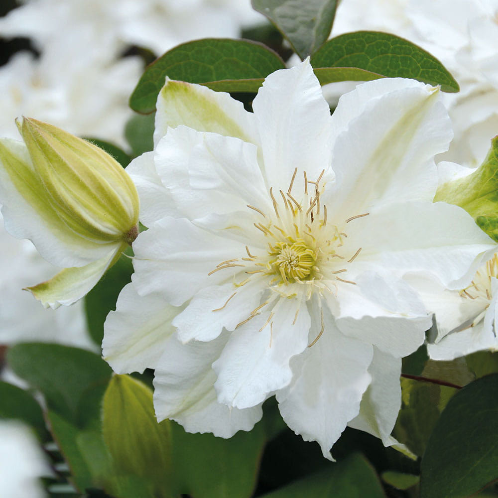 Clematis „Bride’s Bouquet” este o varietate de clematis deosebit de elegantă. Este apreciată pentru aspectul său rafinat și pentru florile bogate, care amintesc de un buchet de mireasă. Este o plantă ornamentală cățărătoare, perenă, ideală pentru grădini romantice, terase sau spații decorative verticale.