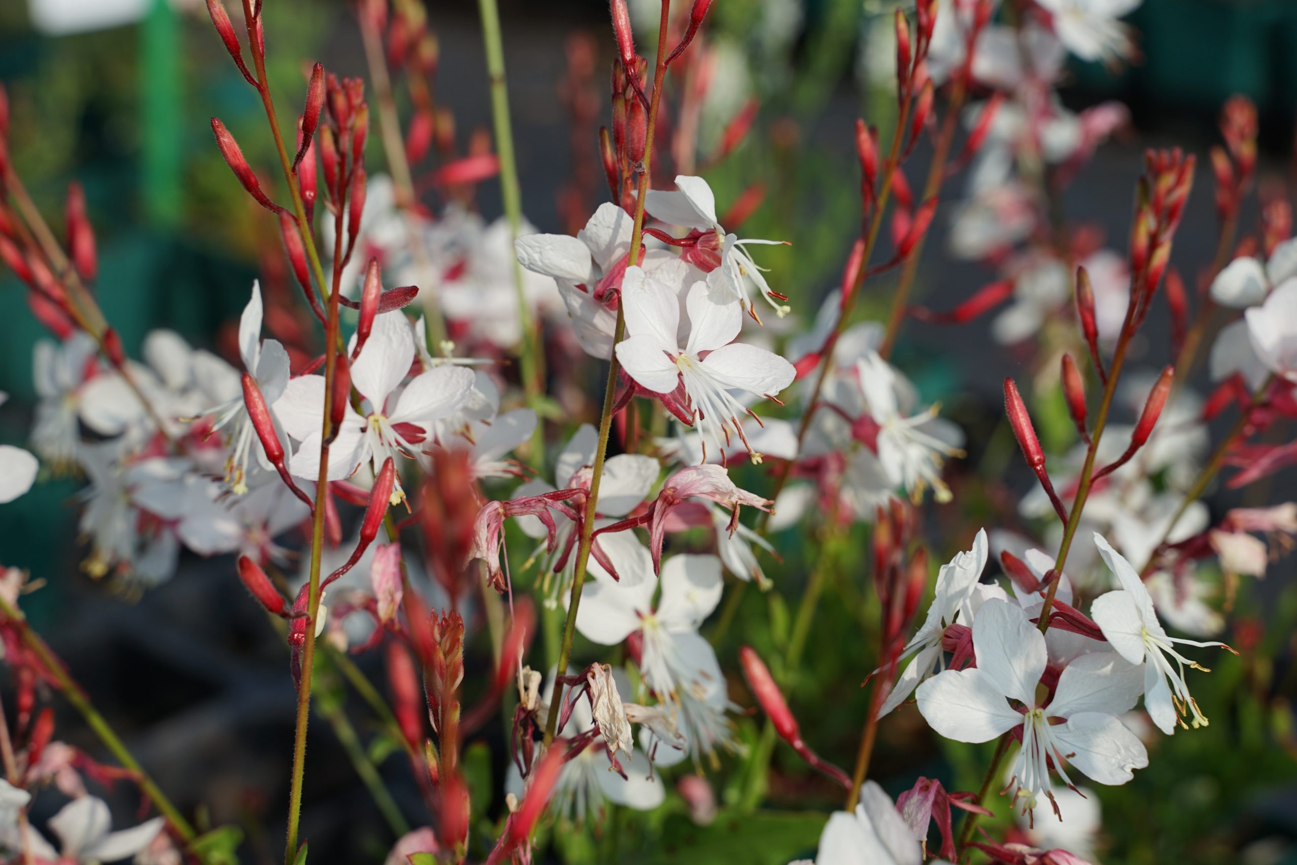Gaura lindheimeri Gaudi White – este o plantă perenă cu o creștere stufoasă. Poate atinge o înălțime de până la 50 de centimetri și înflorește vara cu flori albe imaculate, care se ridică deasupra frunzișului gri-verzui. Această floare-baghetă se caracterizează printr-o perioadă lungă de înflorire; din iunie până în septembrie, pot fi admirate frumoasele flori. Frunzele plantei sunt alungite și au o margine ușor zimțată.