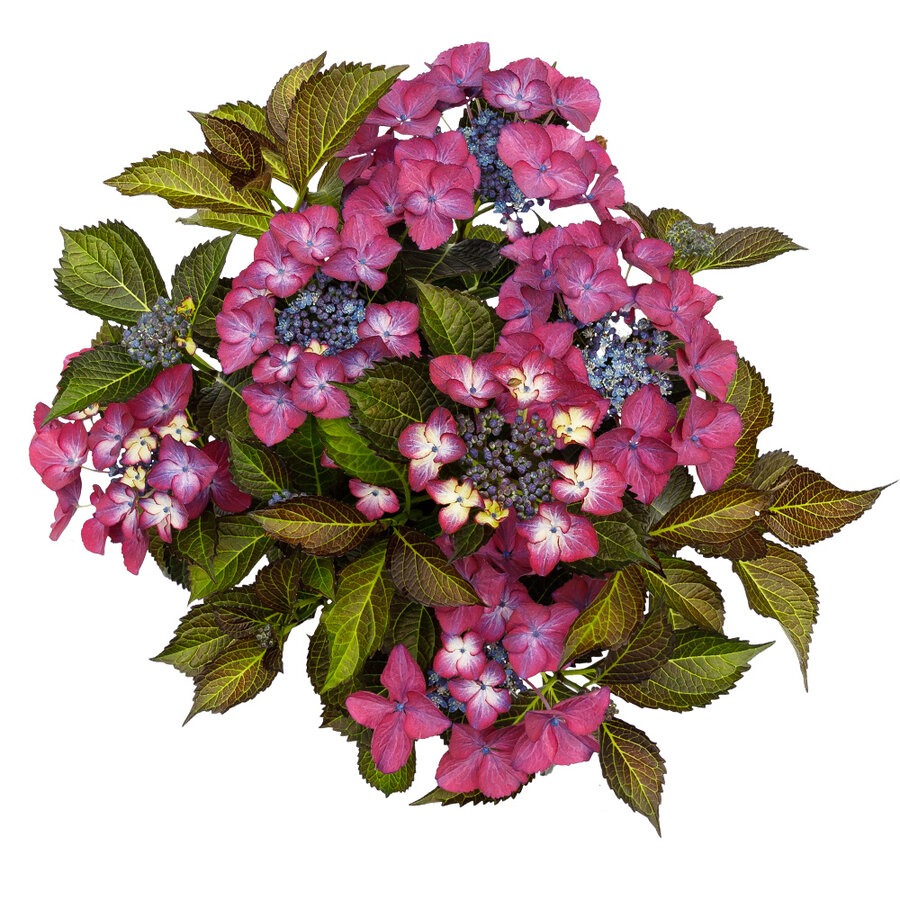 Florile violet contrastează puternic cu frunzele închise, ceea ce face această hortensie foarte populară pentru grădini decorative moderne.