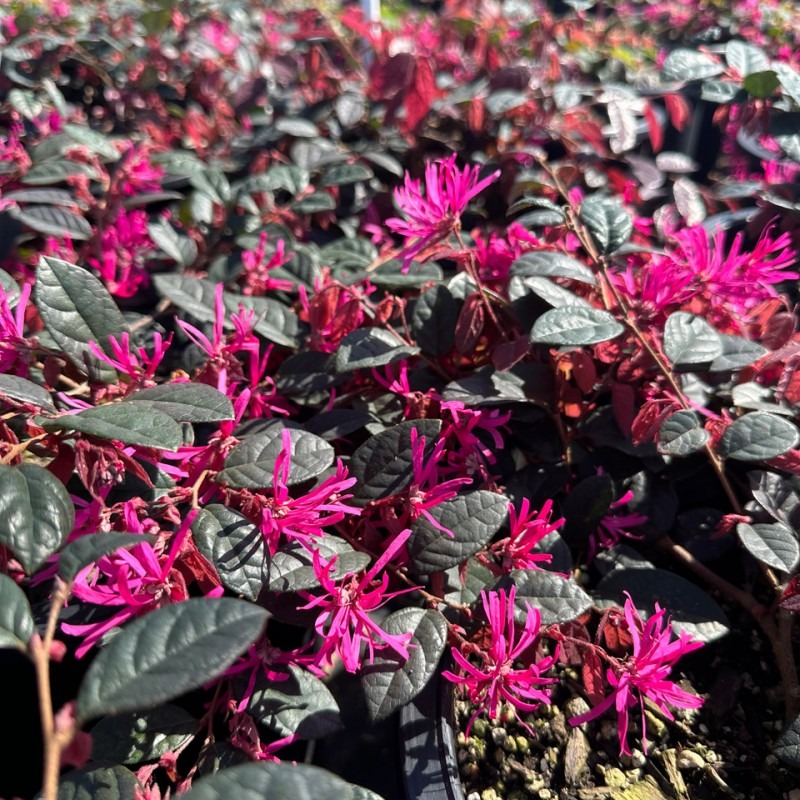 Loropetalum chinense Fire Dance – Originar din Asia de Est, Loropetalum ‘Fire Dance’ este un arbust veșnic verde destul de compact. Frunzișul roșu-violet închis este prezent tot timpul anului, cu flori roz parfumate, frumoase, care înfloresc din martie până în mai. Acest arbust rotund și spectaculos va avea un aspect izbitor, ideal pentru a adăuga o pată de culoare ghivecelor de pe terasă sau pentru a fi plantat în bordurile grădinilor. Deși tolerează zonele complet însorite, recomandăm plantarea în locuri mai umbrite, unde va ajunge la o înălțime de 1 m.