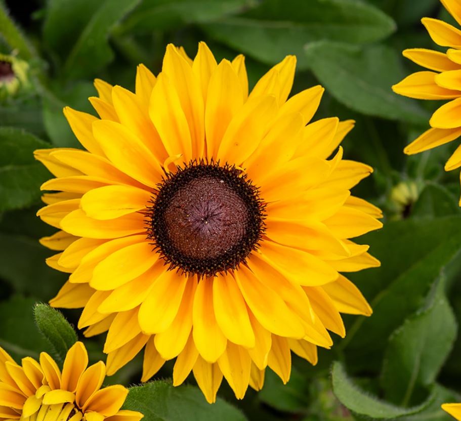 Rudbeckia ‘Big Cheerleader’ este o plantă perenă ornamentală deosebit de atractivă, apreciată pentru florile sale mari, duble, de un galben intens, care aduc energie și luminozitate grădinii pe o perioadă îndelungată. Face parte din categoria rudbeckiilor moderne, selecționate special pentru înflorire bogată, port compact și rezistență bună în timp.