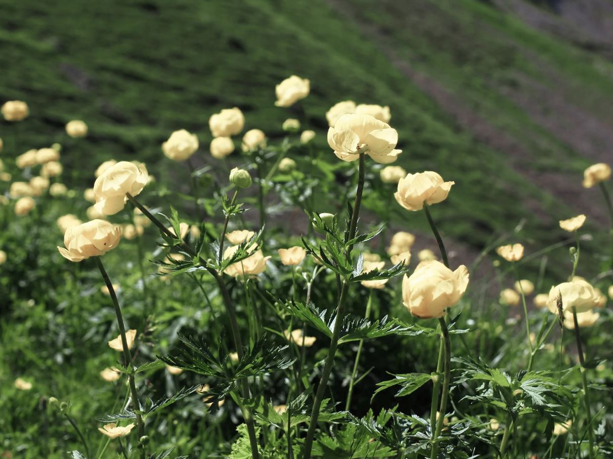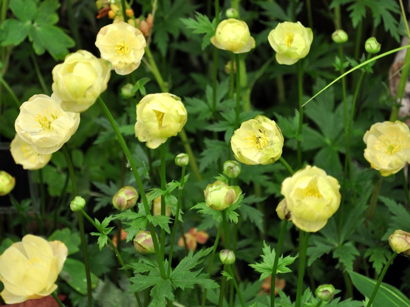 Trollius New Moon – O plantă perenă foarte populară, care înflorește la sfârșitul primăverii sau începutul verii, cu flori galbene-unt frumoase; îi place umiditatea uniformă, luați în considerare adăugarea unui mulci de vară în jurul bazei; tăiați după înflorire pentru a încuraja o creștere a frunzelor noi pentru vară.