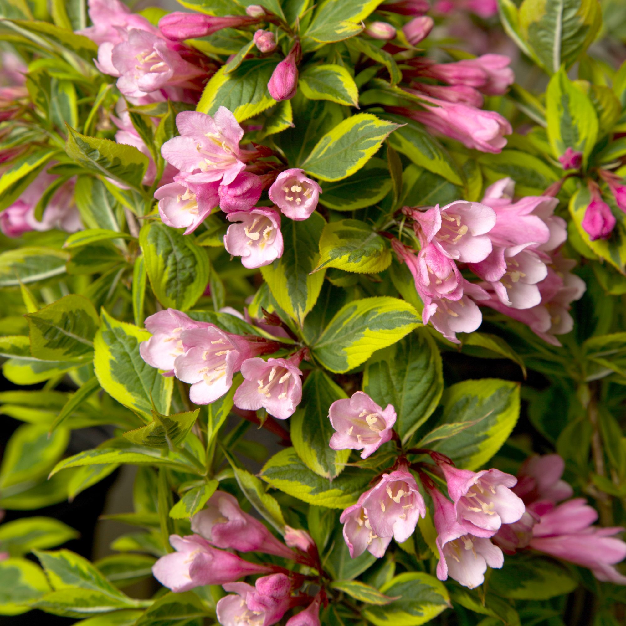 Weigela ‘Magical Rainbow’ este o varietate de arbușt peren cu frunze colorate și flori spectaculoase, ideală pentru grădini și peisaje decorative. Este un hibrid modern, cunoscut pentru frumusețea sa deosebită și pentru comportamentul său rezistent, care adaugă o notă de culoare și eleganță pe tot parcursul sezonului.